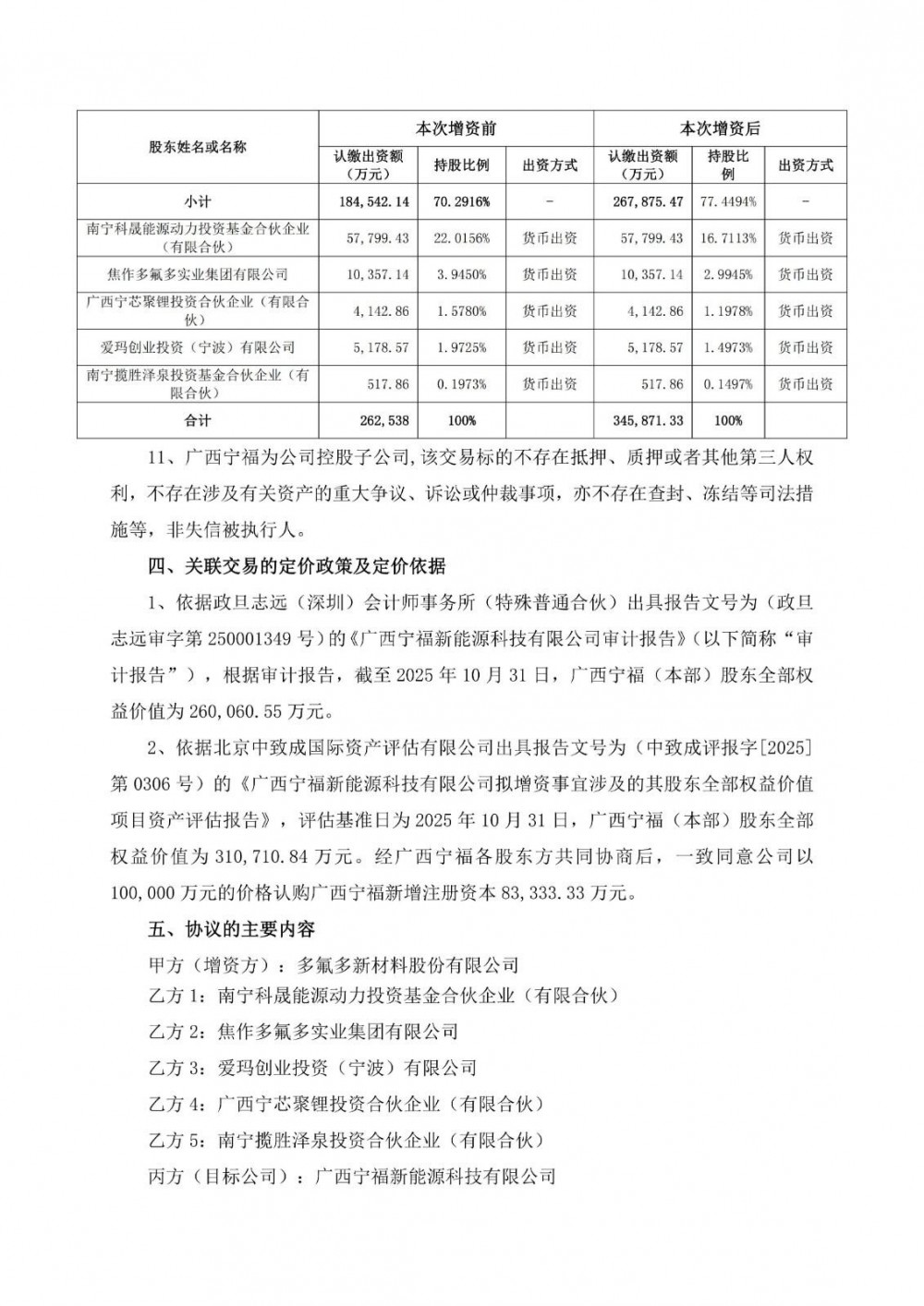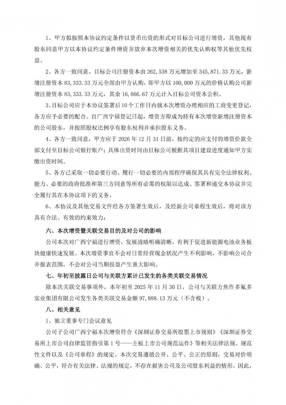 12月11日,多氟多发布公告称,公司召开第七届董事会第三十四次会议,审议通过了《关于拟向控股子公司增资暨关联交易的议案》,同意公司控股子公司广西宁福新能源科技有限公司新增注册资本83,333.33万元,注册资本由262,538万元变更为345,871.33万元。