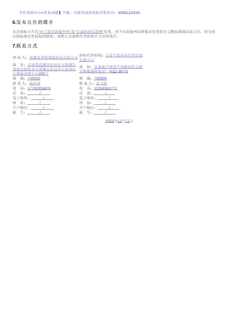 据了解,本招标项目招标人为武威市易特储能科技有限公司。建设地点位于武威市凉州区九墩滩光伏治沙示范园区,投资总额(以批准的概算为准):60000万元,折合单价为0.75元/Wh。