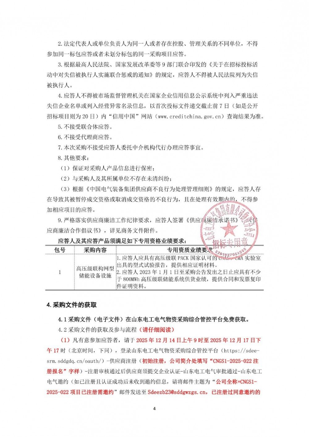 要求应答人2023年1月1日至采购公告发出之日止应具有不少于800MWh高压级联储能系统供货业绩。