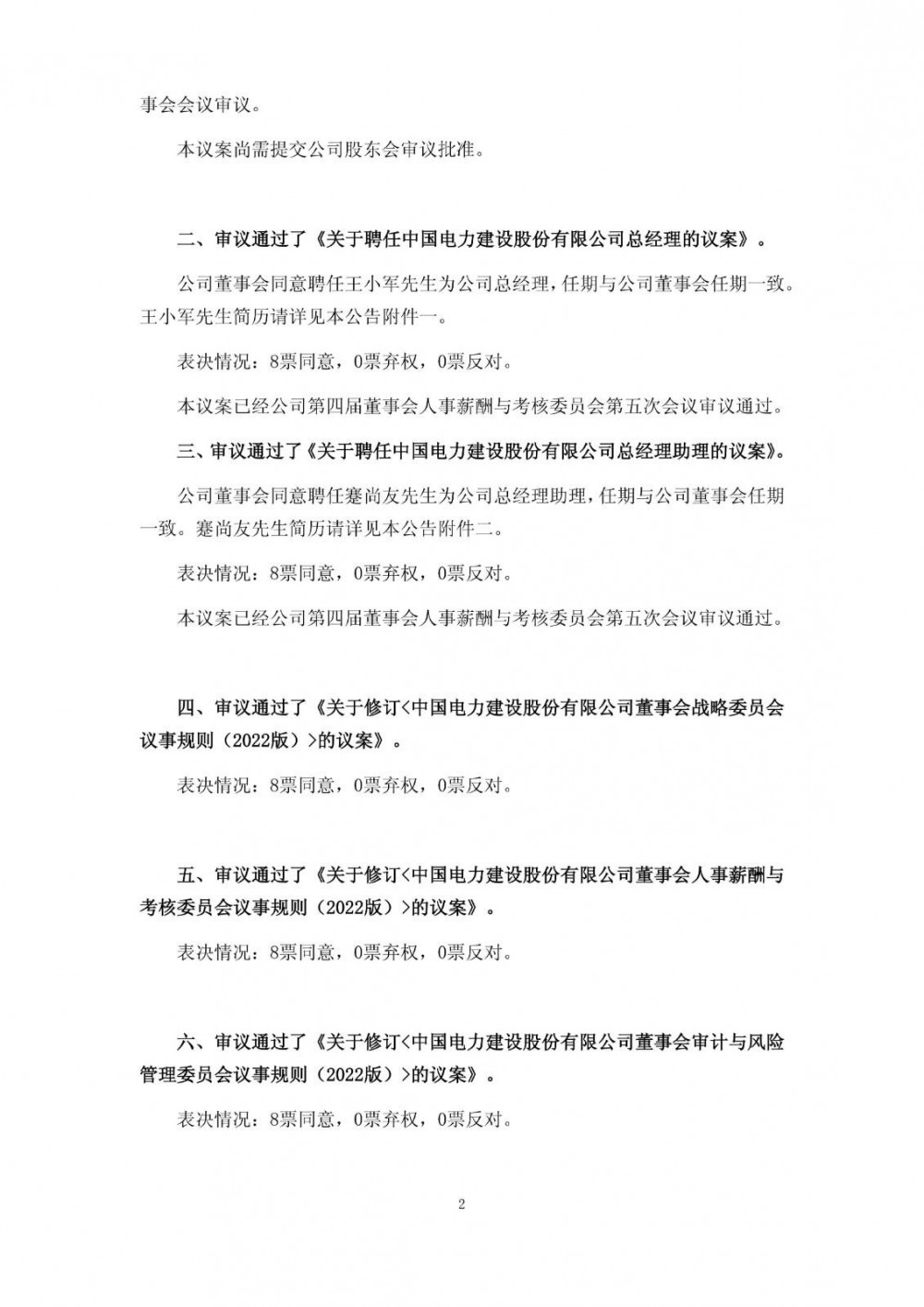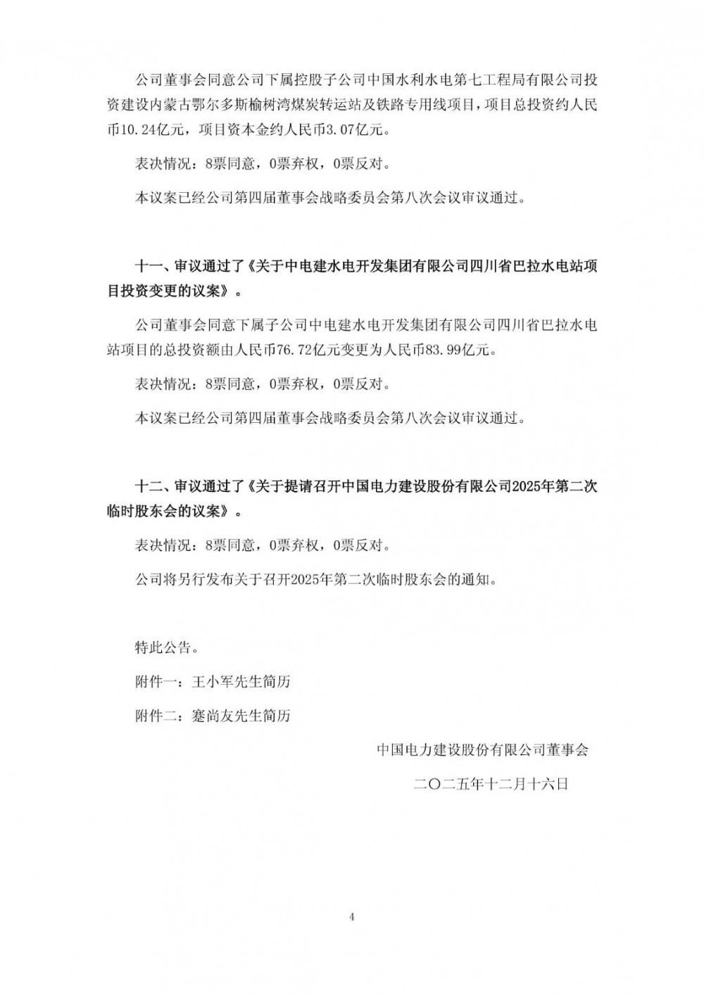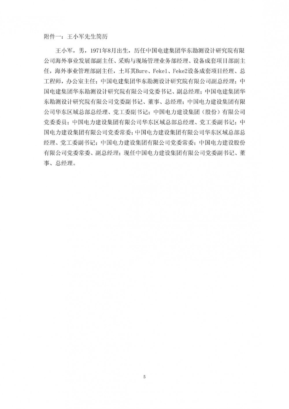 储能界获悉,12月15日,中国电建公告称,经公司控股股东中国电力建设集团有限公司提名、公司董事会人事薪酬与考核委员会审核,公司董事会同意推举王小军先生为公司第四届董事会董事候选人,任期与第四届董事会其他董事任期一致。公司董事会同意聘任王小军先生为公司总经理,任期与公司董事会任期一致。