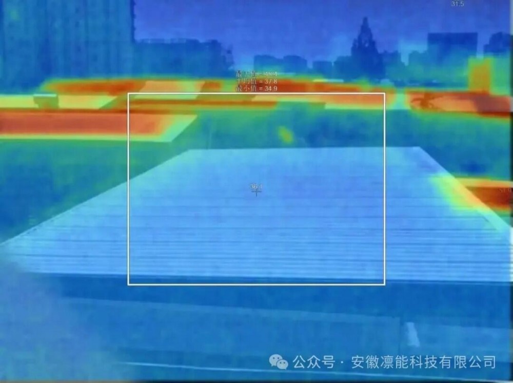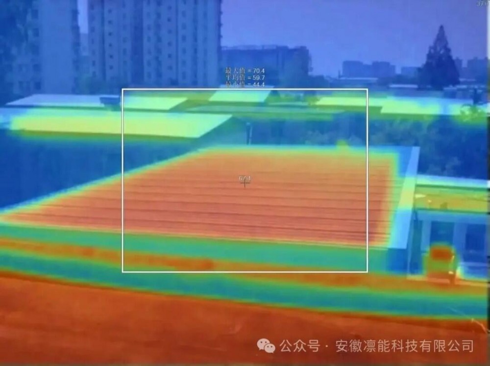 这层薄薄的 科技铠甲,创造了惊人效果 —— 相同高温环境下,未改造的西侧岗亭屋顶温度飙升至 73.2℃,而东侧岗亭屋顶温度仅 39.6℃,最大降温差达 33.6℃!