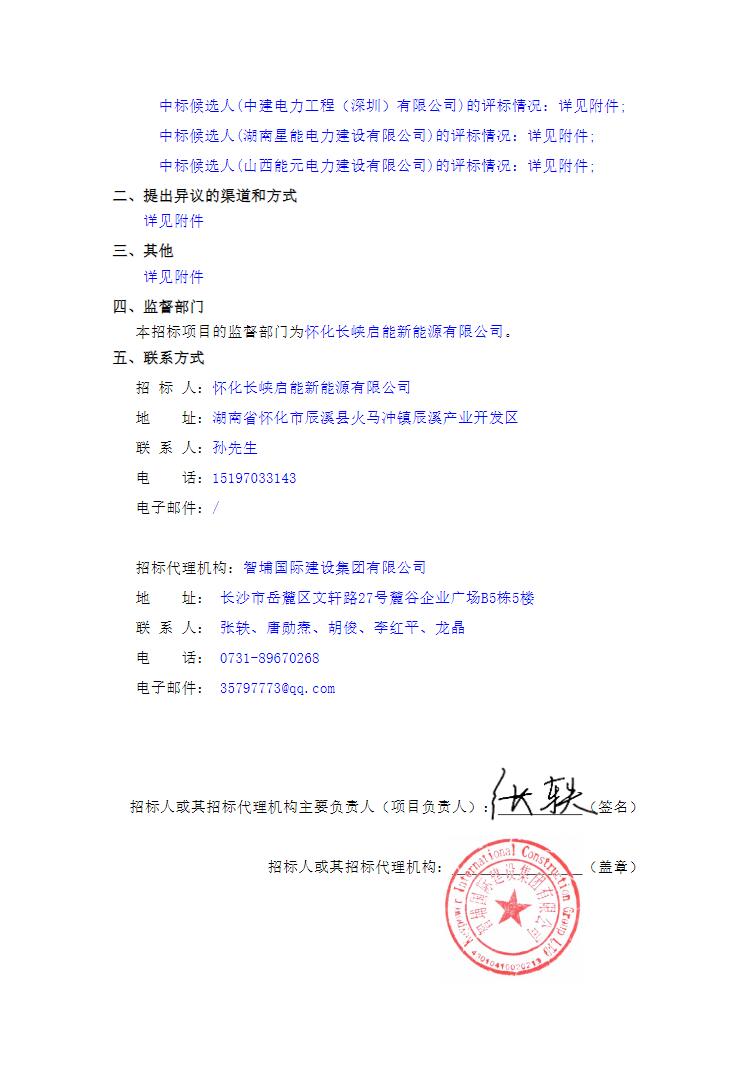 第一中标候选人为中建电力工程(深圳)有限公司,投标报价24812.56128万元,折合单价1.2406元/Wh;第二中标候选人为湖南星能电力建设有限公司,投标报价25507.73643万元,折合单价1.2754元/Wh。