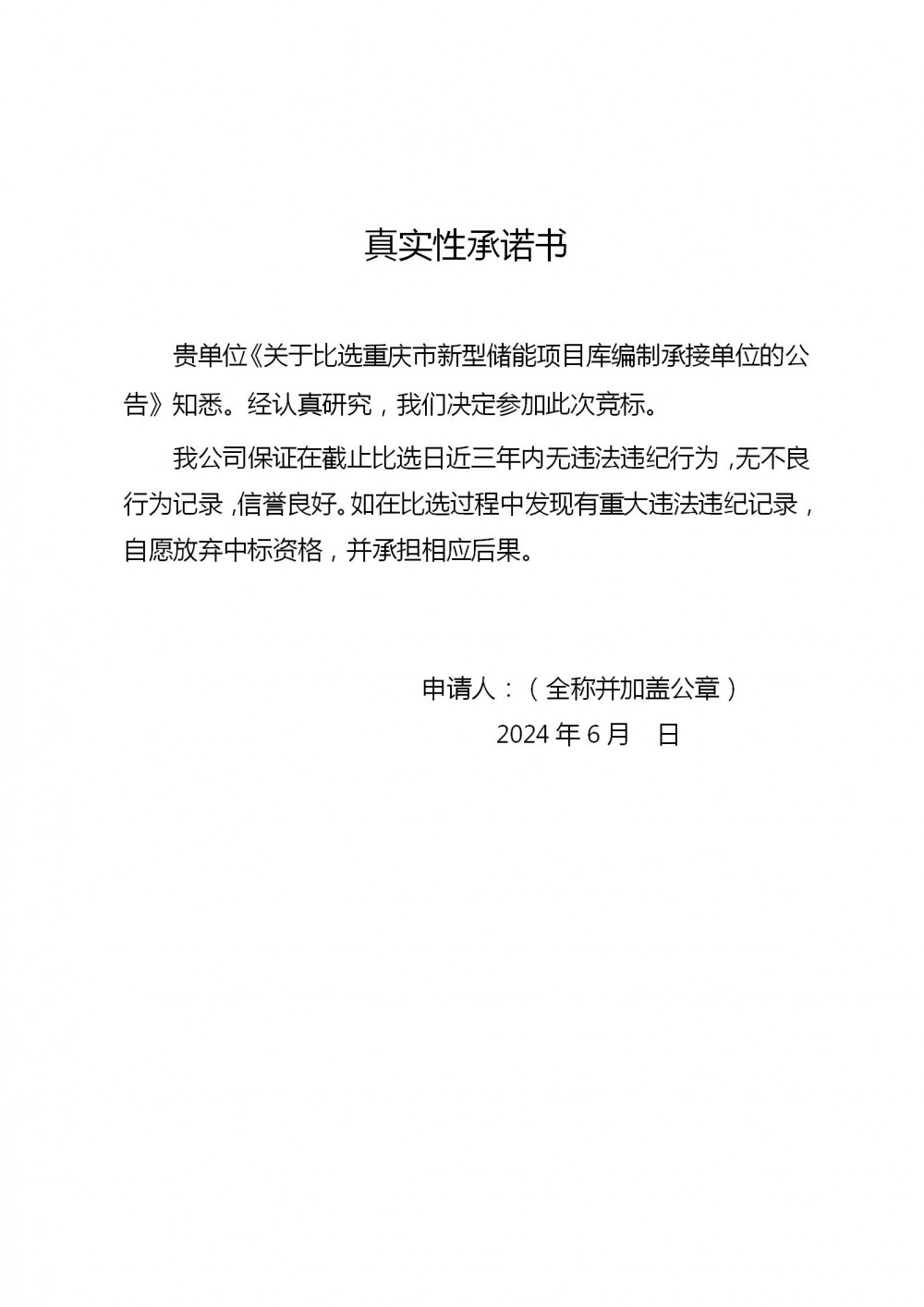 (五)真实性承诺书;