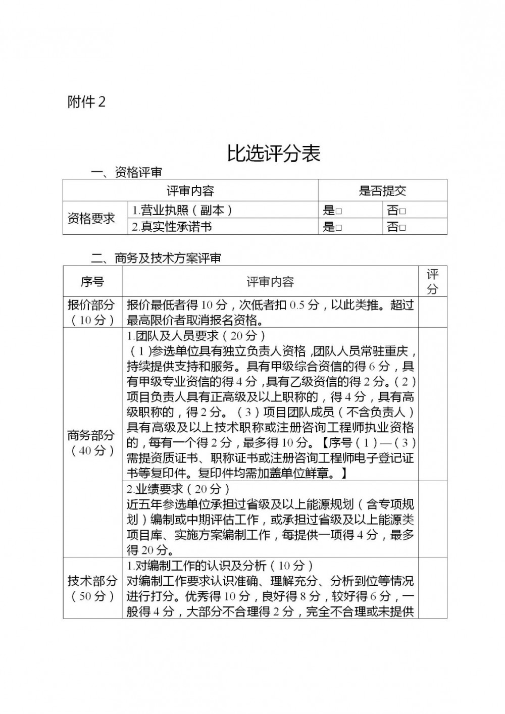 2.比选评分表