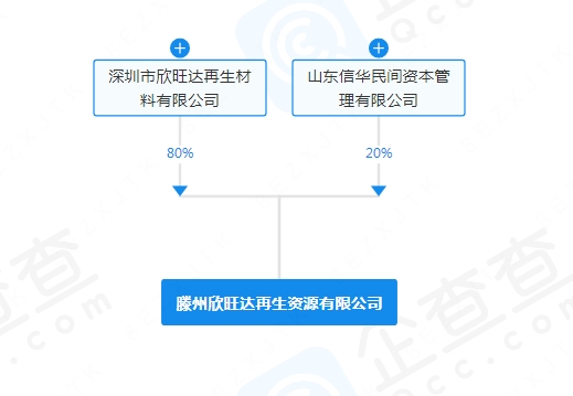 根据股权穿透显示,该公司由欣旺达旗下深圳市欣旺达再生材料有限公司、山东信华民间资本管理有限公司共同持股。