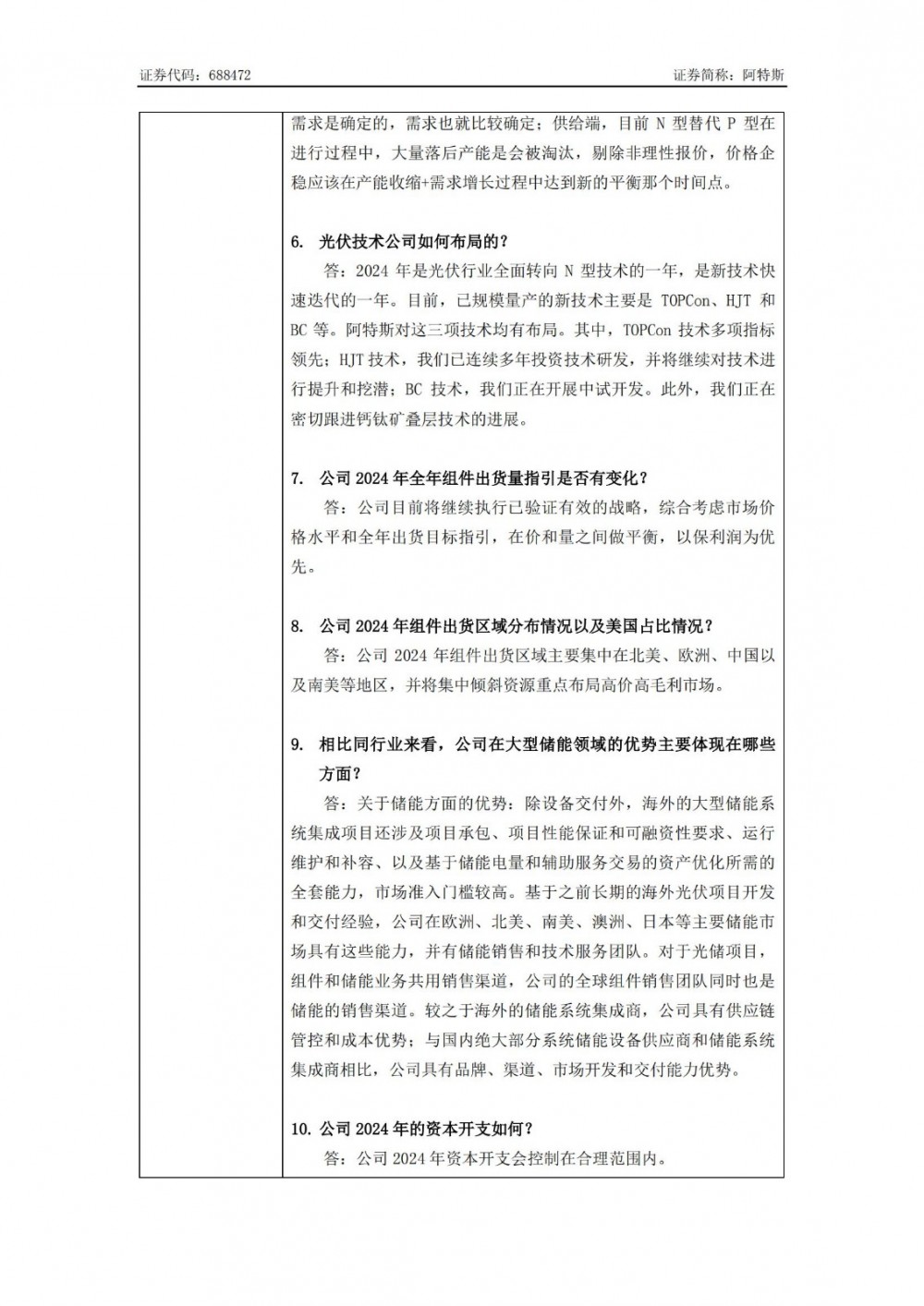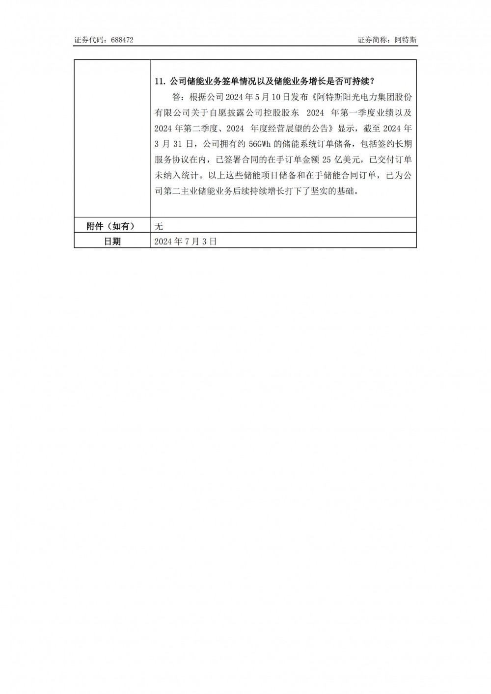 据储能界了解到,7月3日,阿特斯发布投资者关系活动记录表。