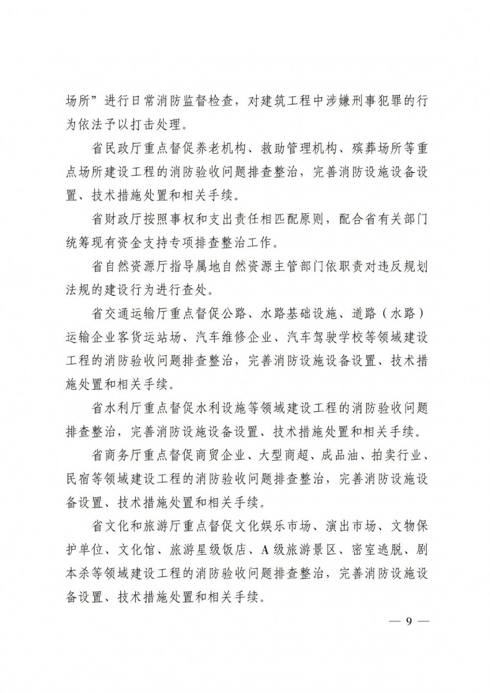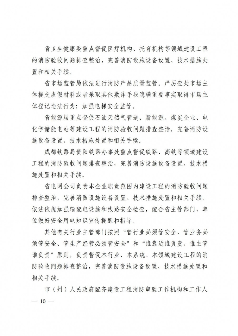 省电网公司负责本企业职责范围内建设工程的消防验收问题 排查整治,完善消防设施设备设置、技术措施处置和相关手续。 依法依规加强输配电设施和线路安全检查,配合省主管部门、单 位做好安全用电知识宣传提醒和指导。