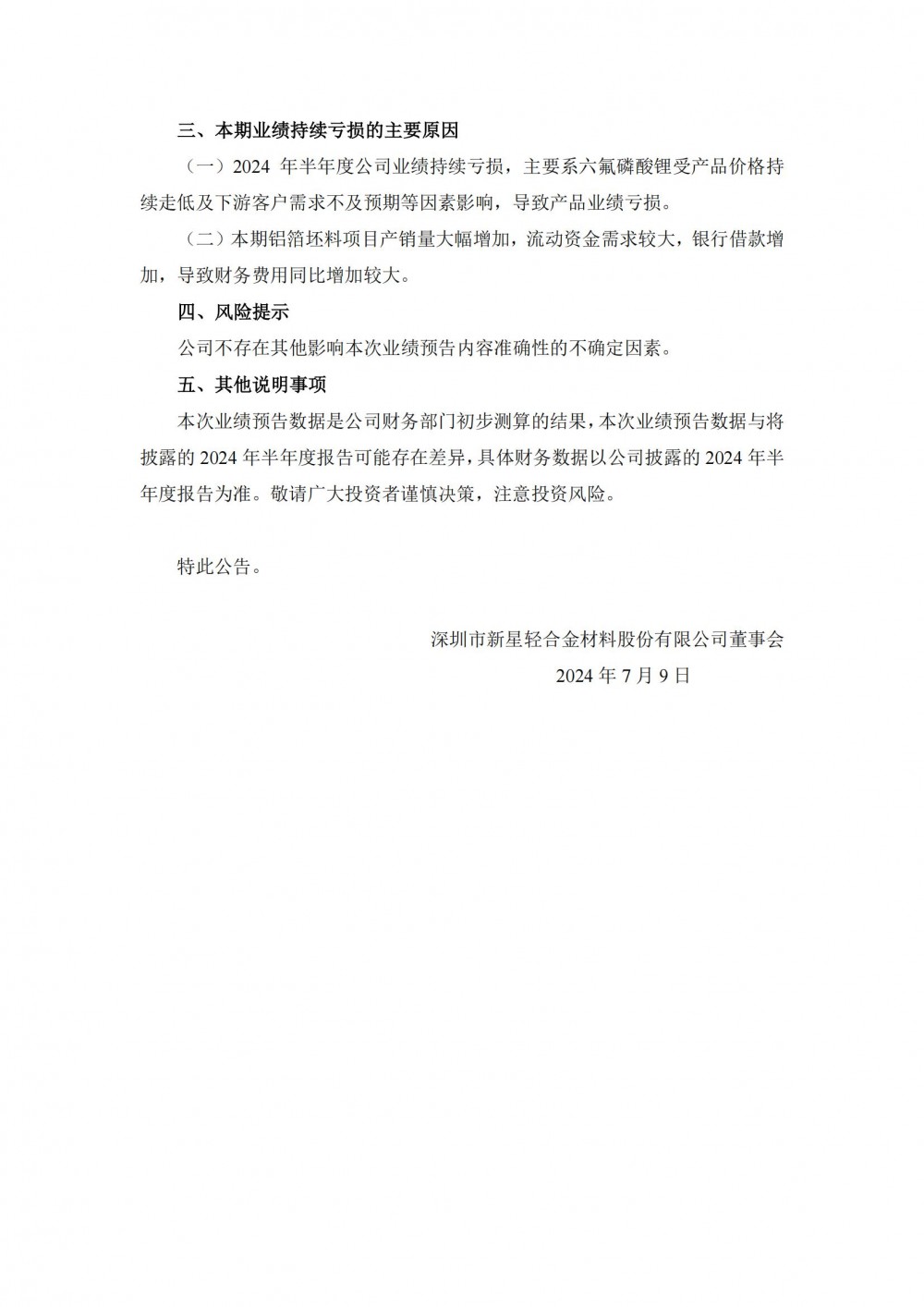 据储能界了解到,7月8日,深圳新星发布公告称,预计2024年半年度实现归属于母公司所有者的净利润为-6500万元到-5500万元,与上年同期相比,亏损增加596.68万元到1596.68万元。