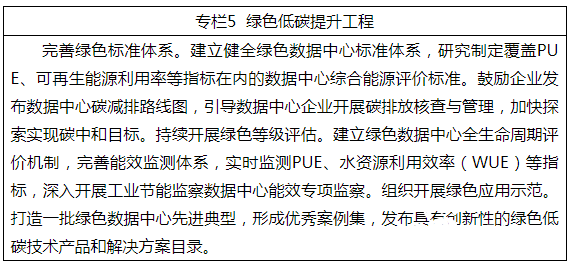 并要求持续提升能源高效清洁利用水平。鼓励企业探索建设分布式光伏发电、燃气分布式供能等配套系统,引导新型数据中心向新能源发电侧建设,就地消纳新能源,推动新型数据中心高效利用清洁能源和可再生能源、优化用能结构,助力信息通信行业实现碳达峰、碳中和目标。