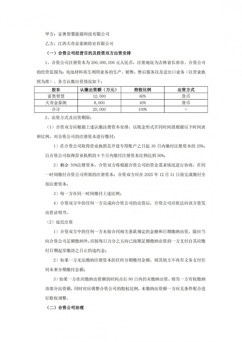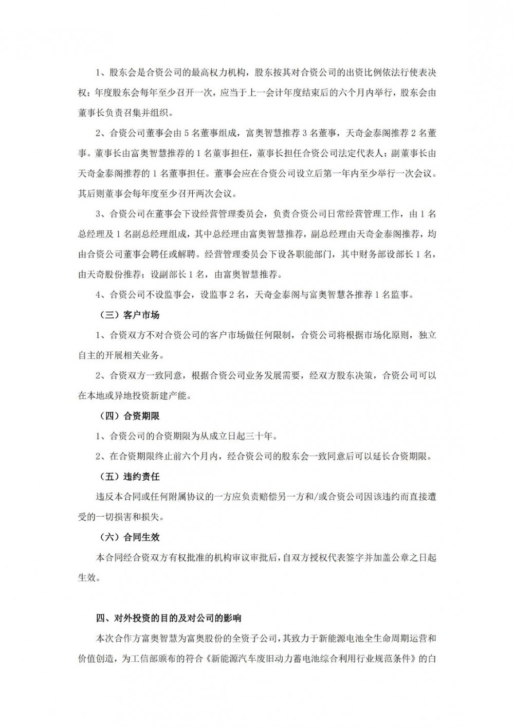 7月10日,天奇股份发布公告称,公司全资子公司江西天奇金泰阁钴业有限公司拟与富奥汽车零部件股份有限公司(以下简称“富奥股份”)下属全资子公司富奥智慧能源科技有限公司共同出资设立合资公司,并以合资公司为主体合作开展电池材料再生利用业务。