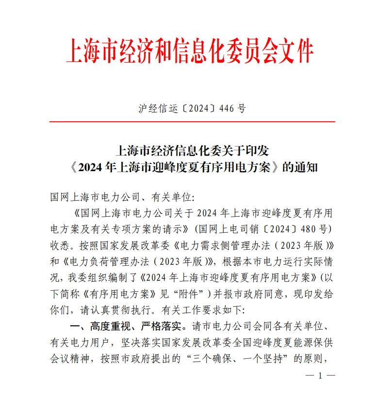 附件:2024年上海市迎峰度夏有序用电方案