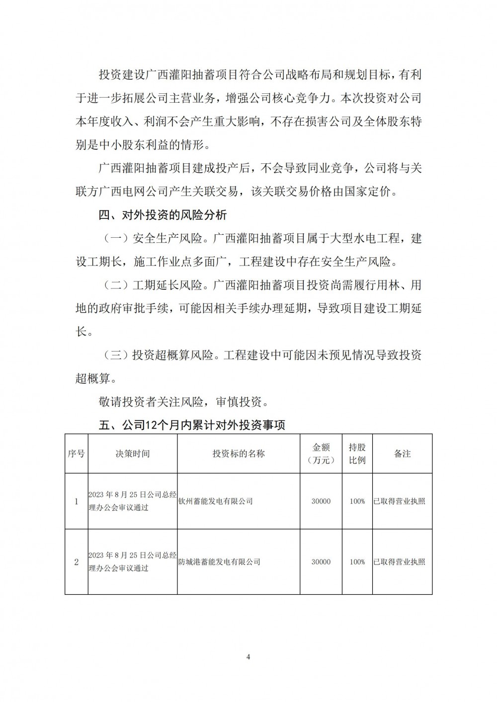 南网储能表示,投资建设广西灌阳抽蓄项目符合公司战略布局和规划目标,有利于进一步拓展公司主营业务,增强公司核心竞争力。本次投资对公司本年度收入、利润不会产生重大影响,不存在损害公司及全体股东特别是中小股东利益的情形。