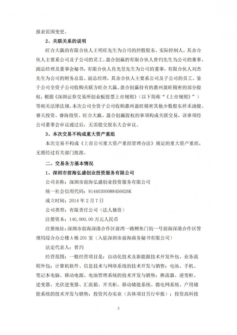 近日,欣旺达发布公告称,公司的全资子公司深圳市前海弘盛创业投资服务有限公司拟以自有资金及自筹资金人民币5.3464亿元收购控股子公司惠州市盈旺精密技术股份有限公司少数股东持有的30.1266%股权。
