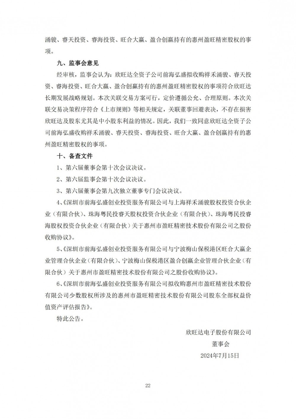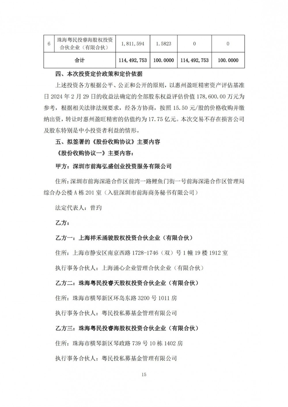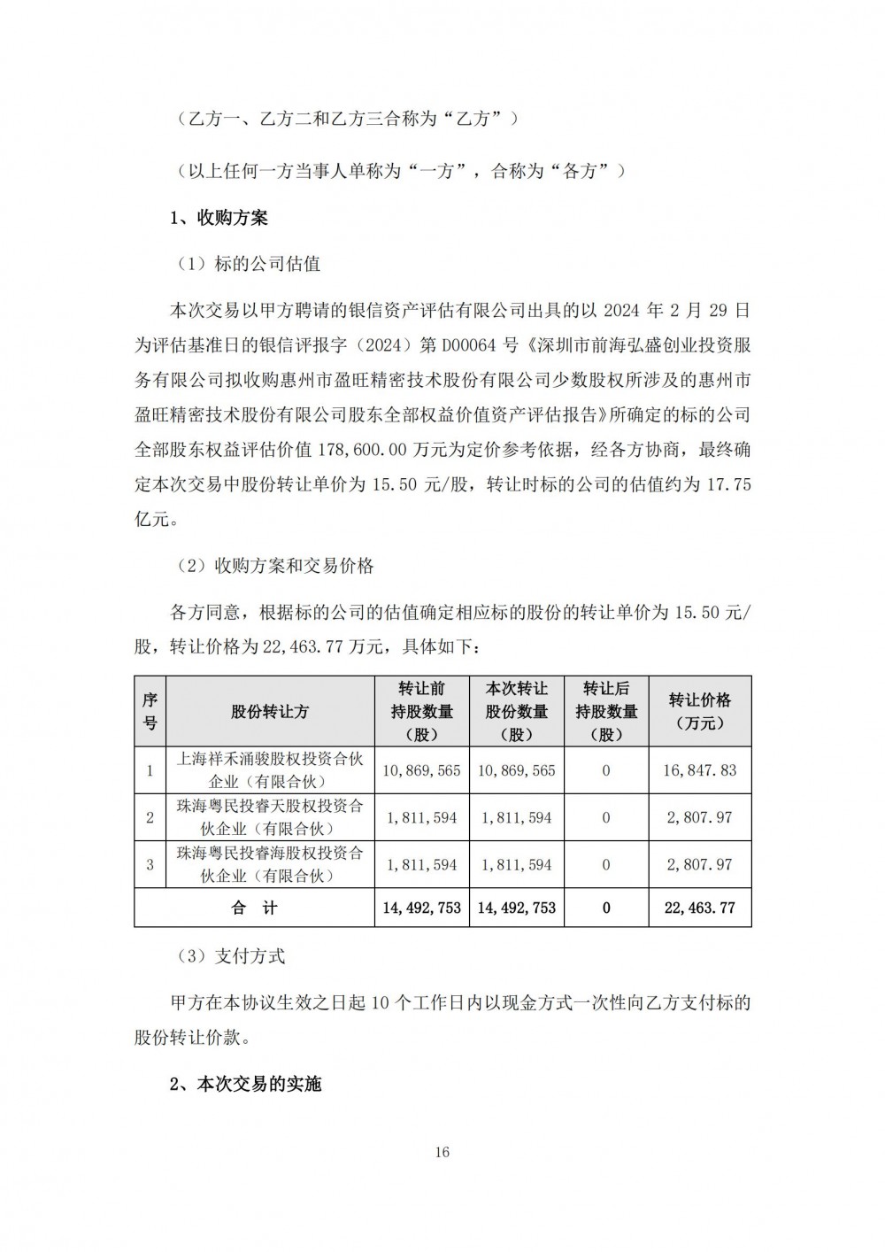 公告显示,惠州盈旺精密是一家专业从事精密结构件的研发、生产和销售的国家级高新技术企业,具有较强的盈利能力,行业地位领先。2022年度和2023年度,惠州盈旺精密的收入分别为25.30亿元和28.76亿元,净利润分别为1.30亿元和1.40亿元。