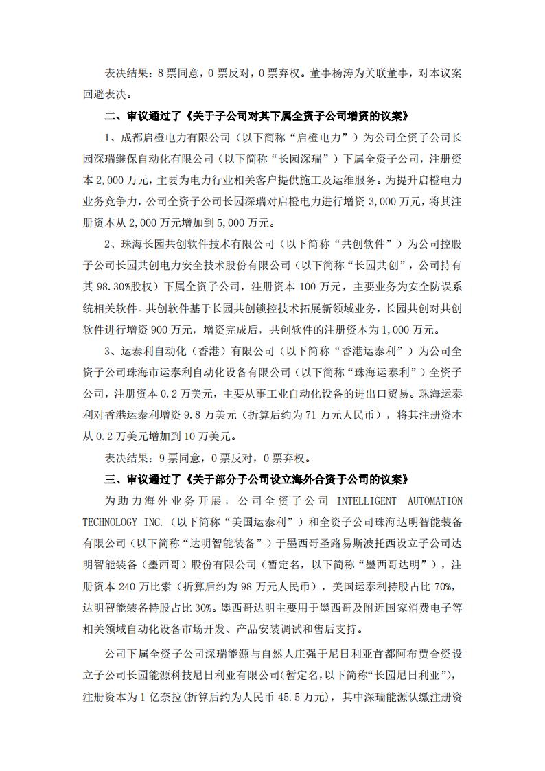 7月17日,长园集团发布第八届董事会审议通过关于部分子公司设立海外合资子公司的议案。