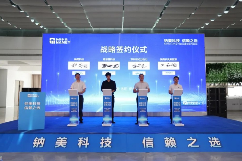 签约仪式上,钠美新能源科技(洛阳)有限公司副总经理郑炎岭代表公司与江苏金派克新能源有限公司、安徽羚一储能科技有限公司、济源华申电源有限公司、深圳市菲尼基科技有限公司、苏州新式力动力能源有限公司、陕西长风新能源有科技有限公司等多家行业知名单位签署战略合作协议,携手助推钠电产业高质量发展。