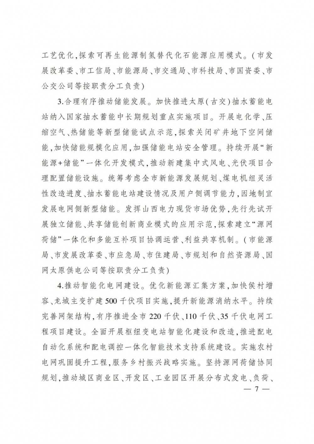 持续推进电化学、压缩空气等新型储能技术攻关、示范和产业化。加快推进太原(古交)抽水蓄能电站建设和谋划布局新型储能项目。开展“源网荷储一体化”项目建设。加快城乡集中供热、智能电网建设,实施农村电网巩固提升工程。谋划布局氢能产业化示范项目,探索开展甲醇氢能分布式应用。