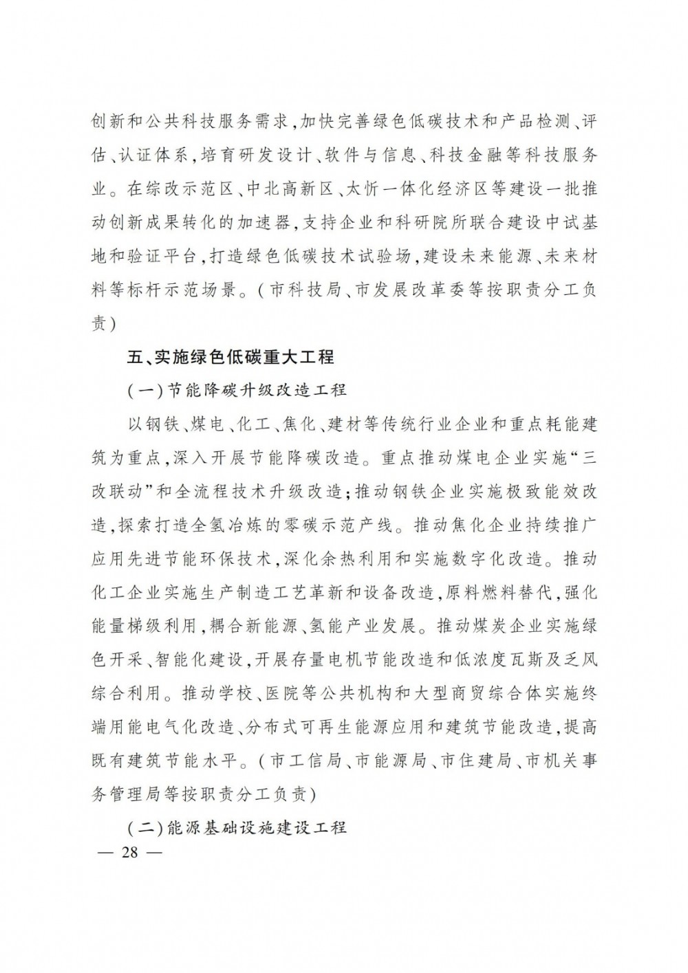 太原市人民政府关于印发国家碳达峰试点(太原)实施方案的通知