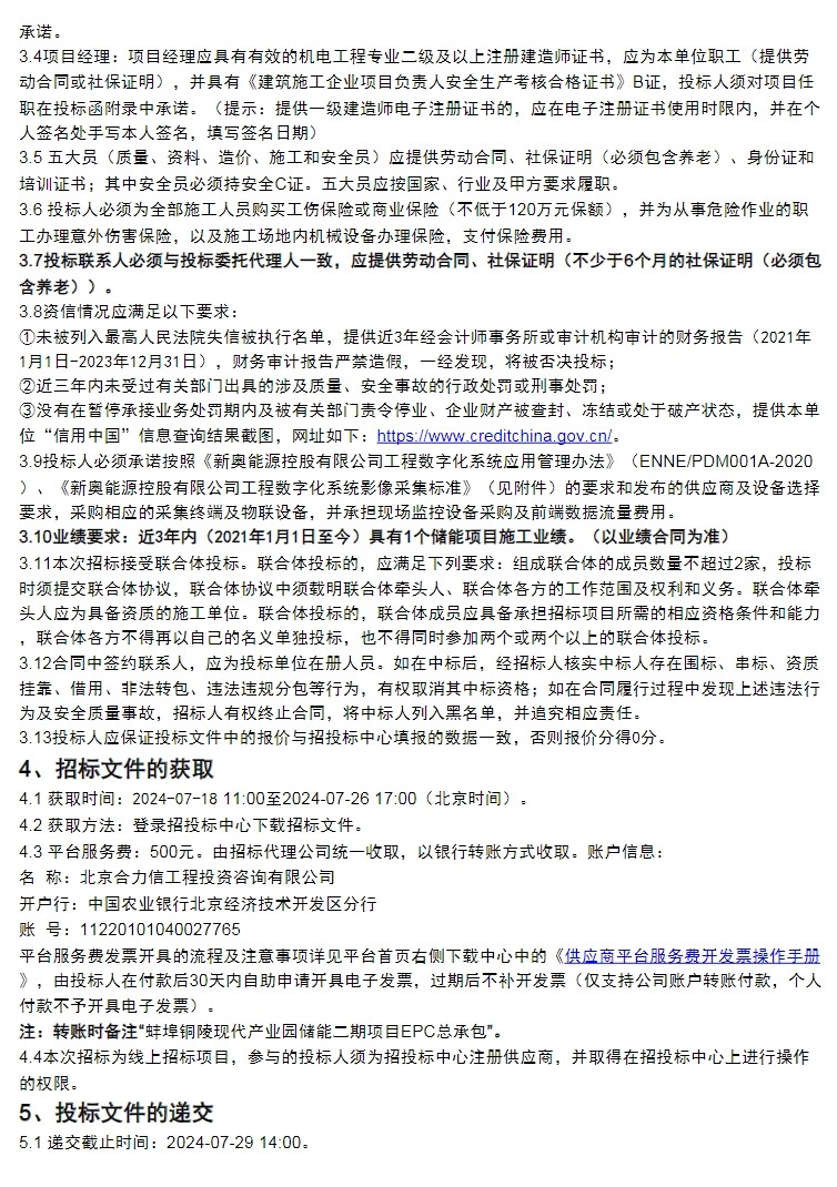 7月18日,蚌埠铜陵现代产业园储能二期项目 EPC总承包招标公告。