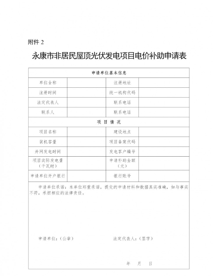 2.永康市非居民屋顶光伏发电项目电价补助申请表