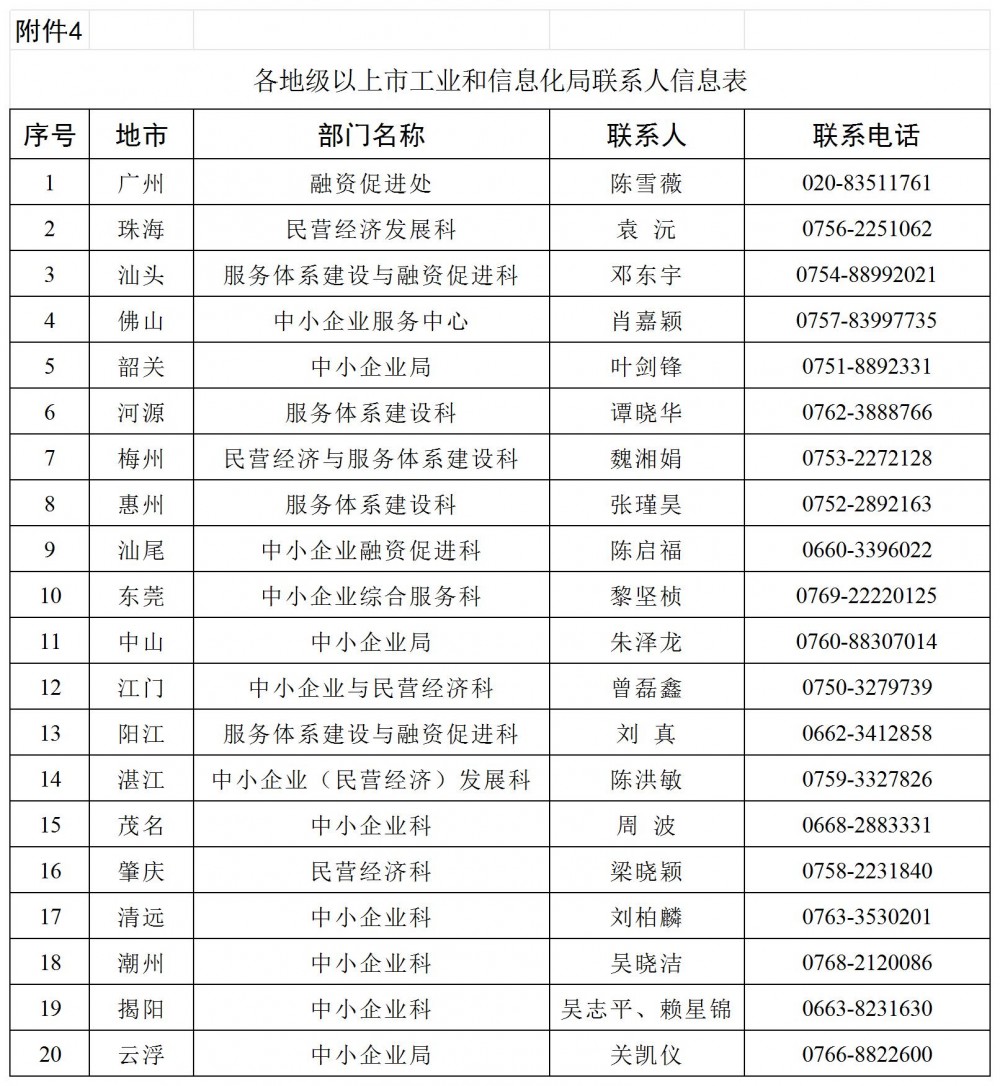 4. 各地级以上市工业和信息化局联系人信息表