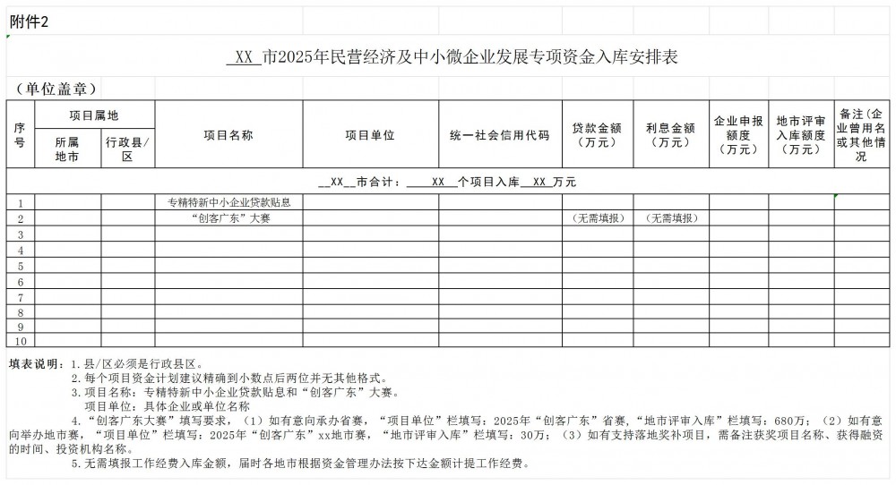 结合省级专精特新中小企业数量占比和适当向粤东西北地区倾斜等因素,对各地市入库项目名额进行分配。请各地市按照《2025年民营经济及中小微企业发展专项资金工作指引》(详见附件1)的评审标准和入库名额,择优评审入库企业。