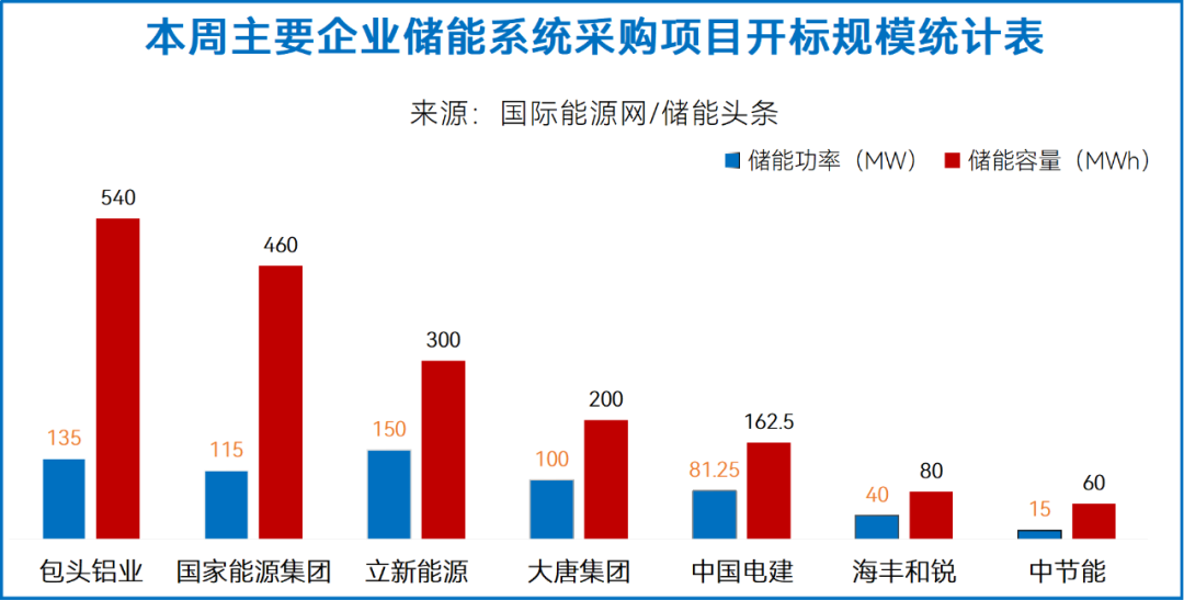 中国电建有2个项目开标,总规模为81.25MW/162.5MWh,南瑞继保、采日能源中标;