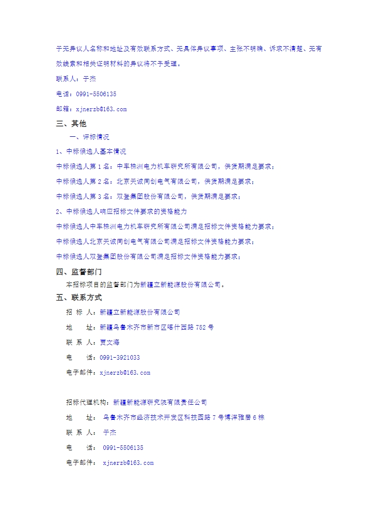 近日,新疆立新能源股份有限公司2024年度B项目储能设备集中采购中标候选人公示。中车株洲电力机车研究所有限公司、北京天诚同创电气有限公司、双登集团股份有限公司分别为第一、二、三中标候选人。