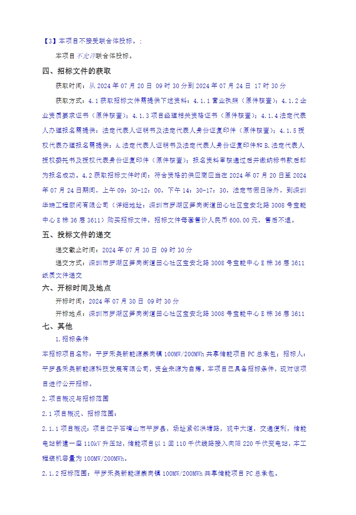 7月20日,平罗禾奥新能源发布宁夏崇岗镇100MW/200MWh共享储能项目PC总承包招标。该项目位于宁夏嘴山市平罗县崇岗镇。储能电站新建一座110kV升压站,储能项目以1回110千伏线路接入向阳220千伏变电站,本工程装机容量为100MW/200MWh。