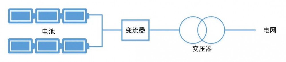 集中式储能通常单台设备容量大、体积大,采用集装箱式装配方式。其系统结构为Pack电池串联组成电池簇,多个电池簇在直流侧并联,汇入一个储能变流器转换成交流电,再经由变压器升压后接入电网。集中式储能系统结构紧凑,容量大,控制逻辑简单,效率高等特点,易于实现大规模能源的集中调配和优化,在电网侧储能和大型可再生能源电站中扮演着重要角色。