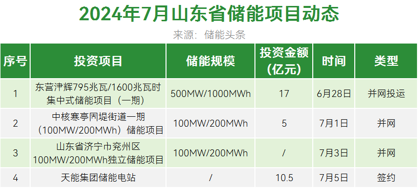 7月,山东省共有4个储能项目有了新进展,储能规模为700MW/1400MWh,明确投资金额32.5亿元。