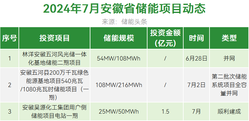 7月,安徽有3个储能电站项目更新了动态,储能规模为187MW/374MWh。