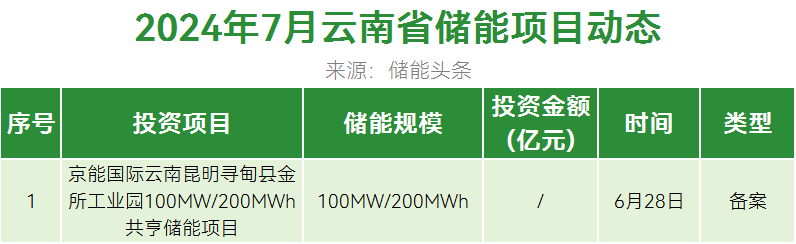 云南有1个储能电站项目更新了动态。储能规模为100MW/200MWh。