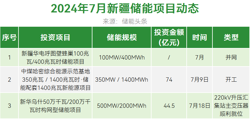 7月,新疆有3个储能项目有了新进展,储能规模为950MW/3800MWh,明确投资金额118.5亿元。