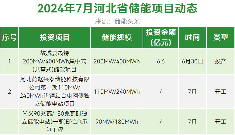 7月,河北省共有3个储能项目有了新进展,储能规模为400MW/820MWh。