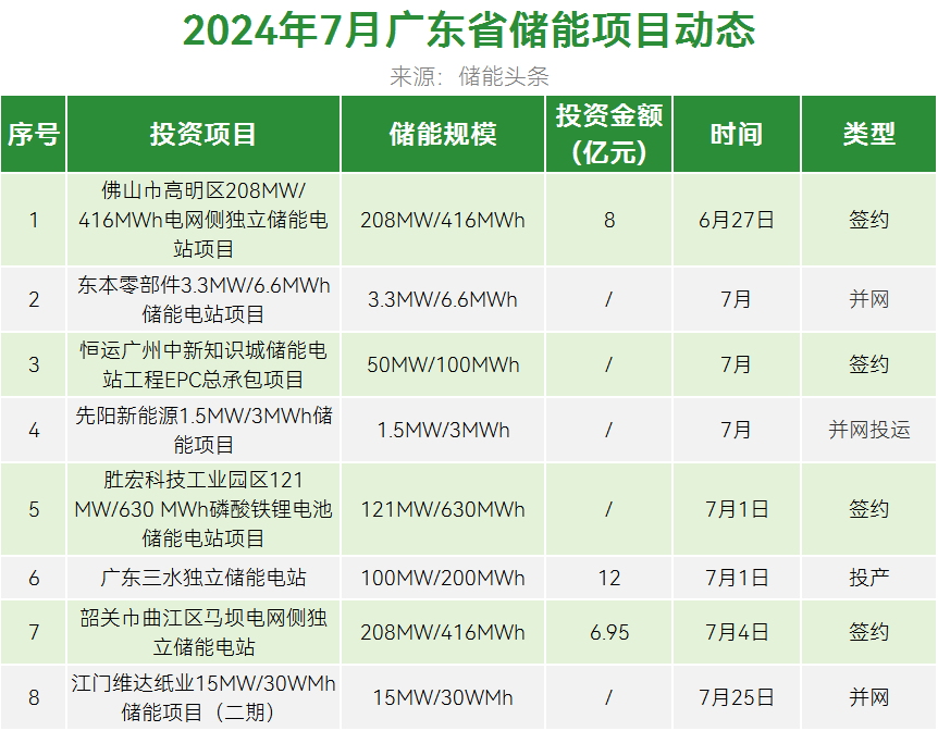 7月,广东省共有8个储能项目有了新进展,储能规模为706.8MW/1801.6MWh。