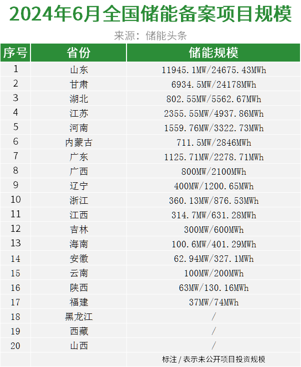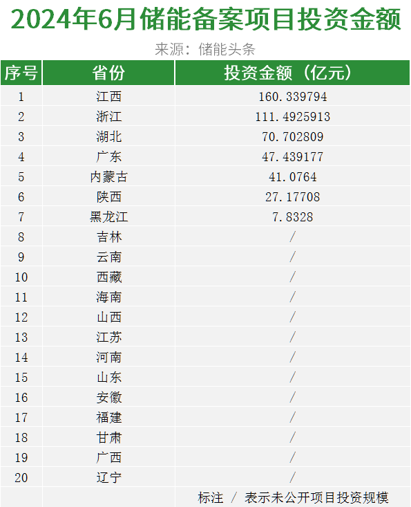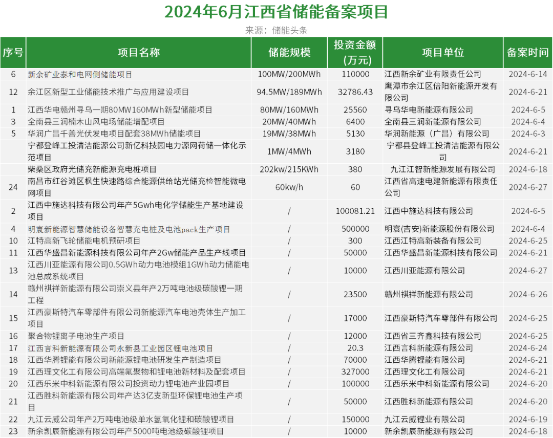 据不完全统计,江西省6月公示了23个备案储能项目。