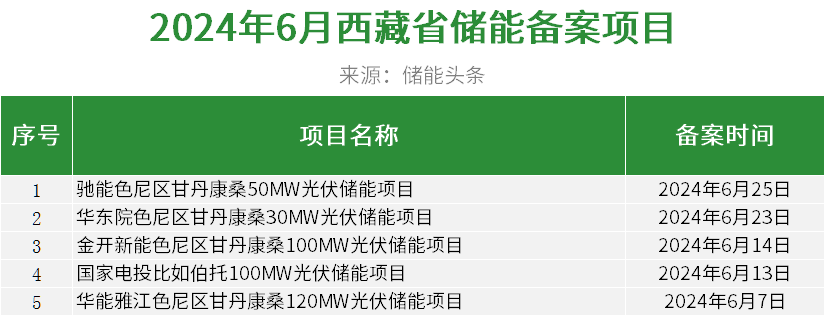 据统计,西藏6月公示了5个备案光伏配储能项目。
