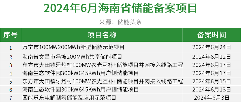 海南省6月份完成7个储能项目备案。
