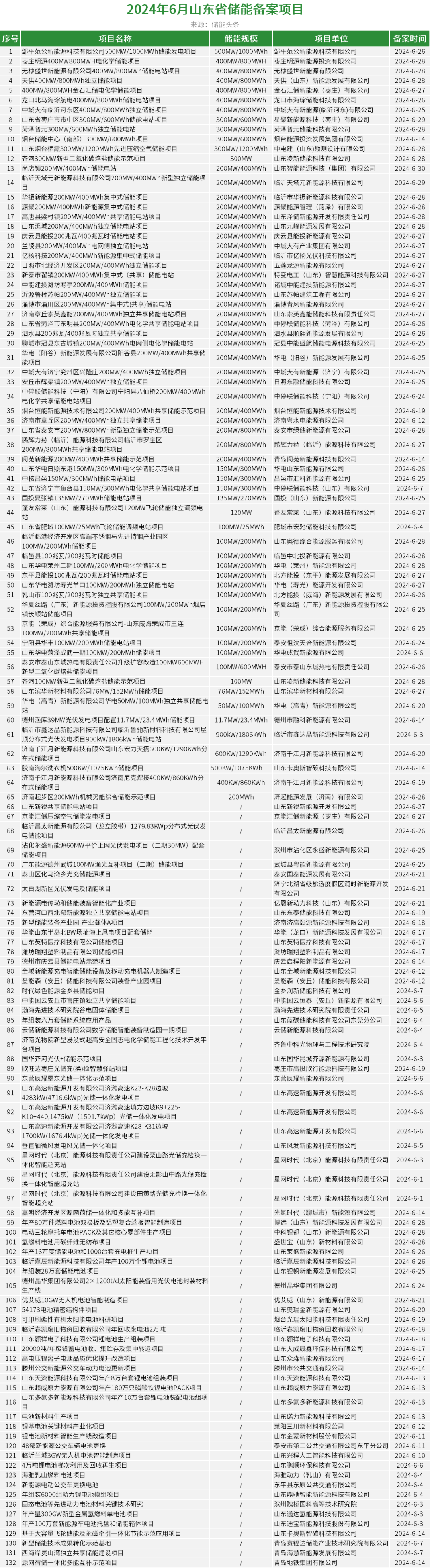 据统计,6月,山东省备案储能项目132个,储能总规模11945.1MW/24675.43MWh(不包含未公示规模的项目),是全国备案规模最大的省份。