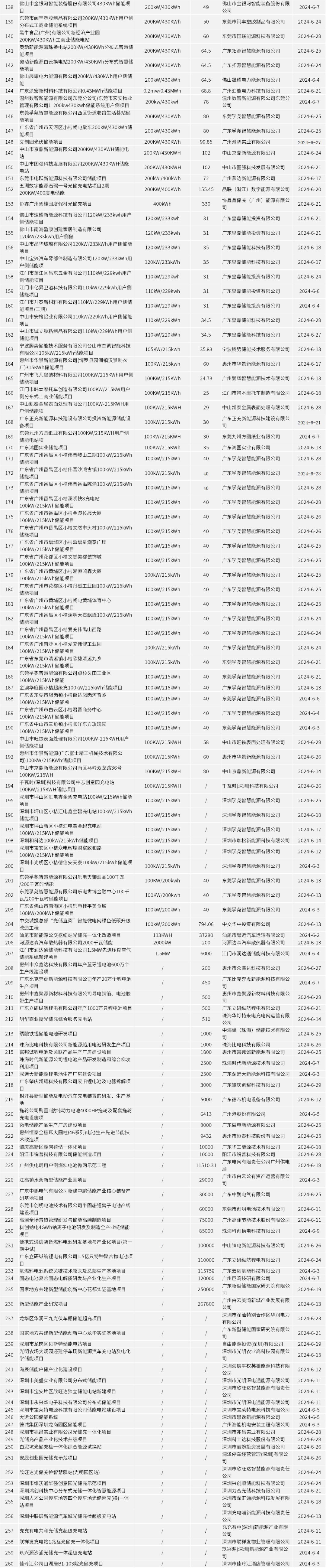 广东省6月完成的储能备案项目如下: