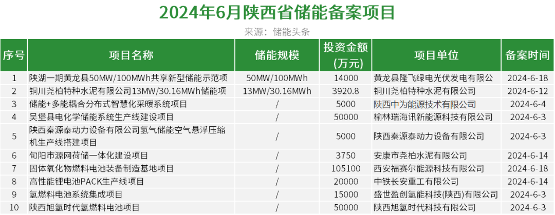 据统计,陕西省6月备案储能项目10个,总投资27.18亿元。