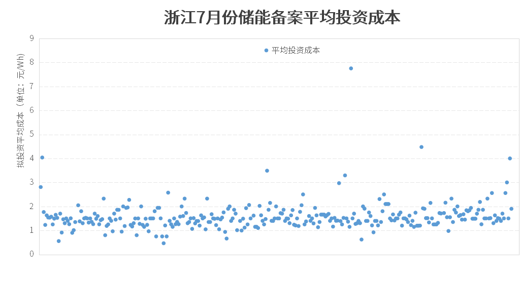 从投资成本单价来看,浙江储能项目拟投资折算单价多数处在1.4元/Wh~2.5元/Wh的范围内,具体投资金额就涉及到具体项目情况,如采取不同技术路线,固有电气设备以及场地租赁等细节。