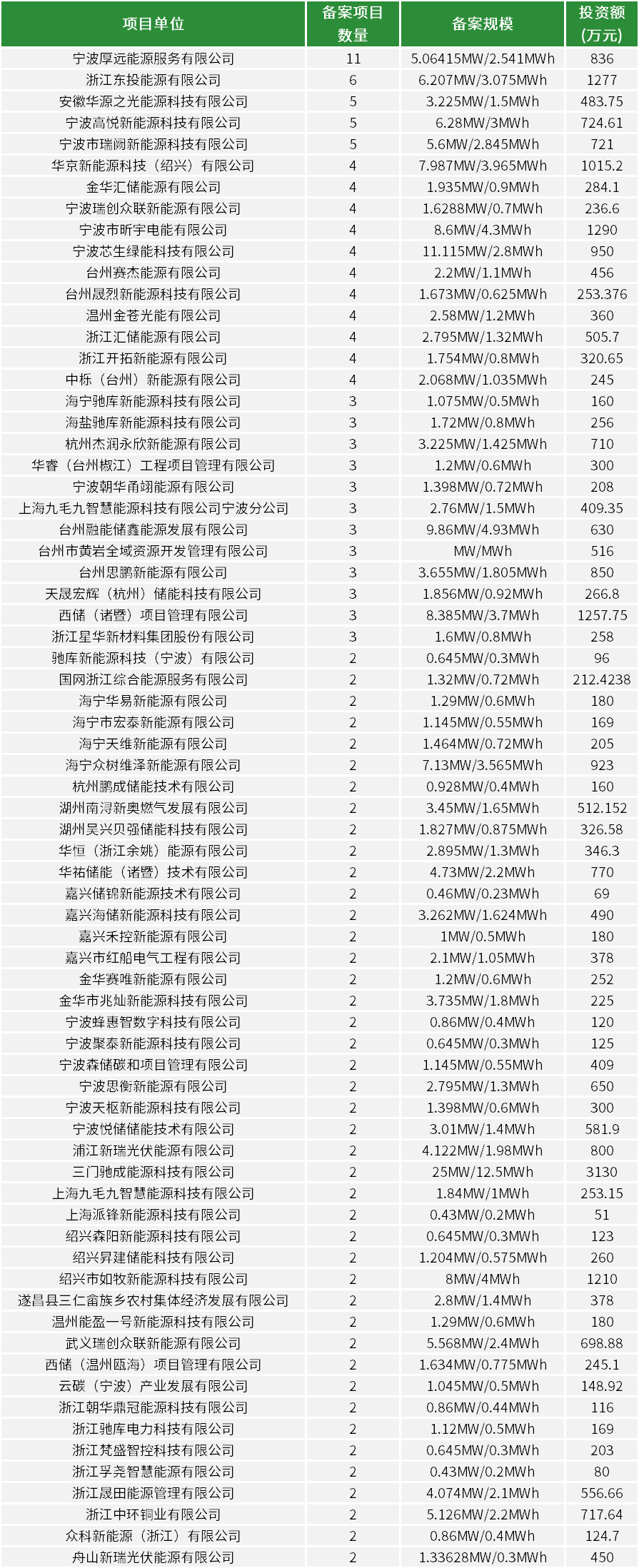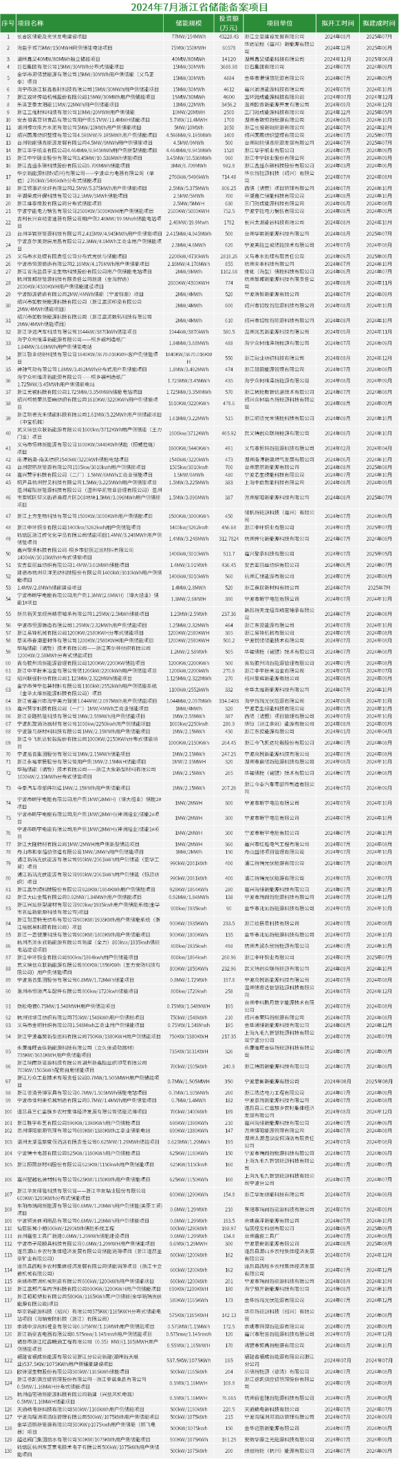 本月度浙江备案储能规模百兆瓦以上的有,长合区储能及光伏发电建设项目,规模为77MW/154MWh;海盐于城75MW/150MWH网侧储能电站项目,规模75MW/150MWH。