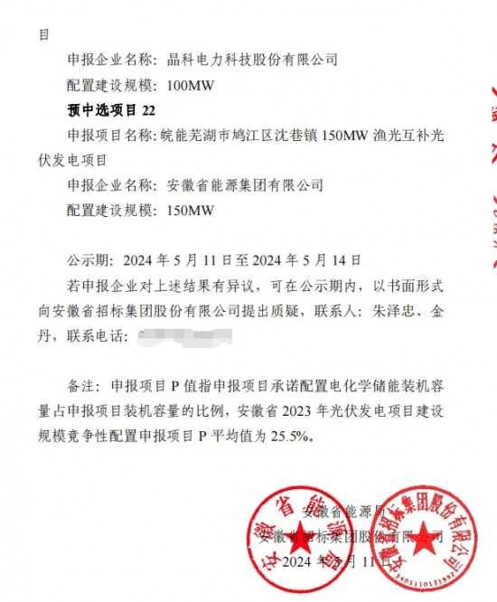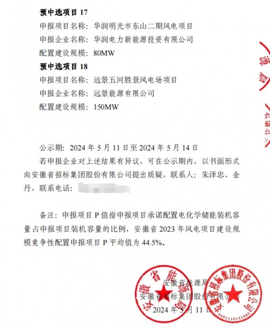 此外,安徽省此次竞配中,光伏、风电项目承诺配置电化学储能装机容量占申报项目装机容量的比例分别为 25.5%、44.5%。