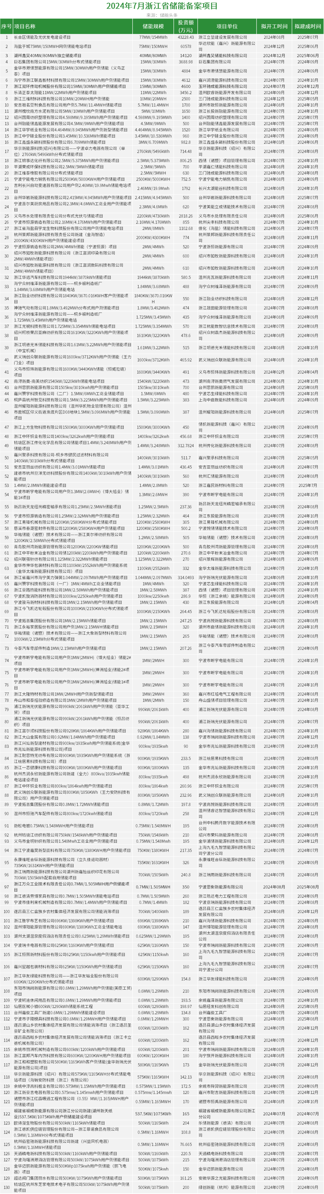 据公开数据不完全统计,2024年7月浙江完成储能项目备案445个,投资金额76.72亿元,备案储能规模501.61MW/1051.77MWh。