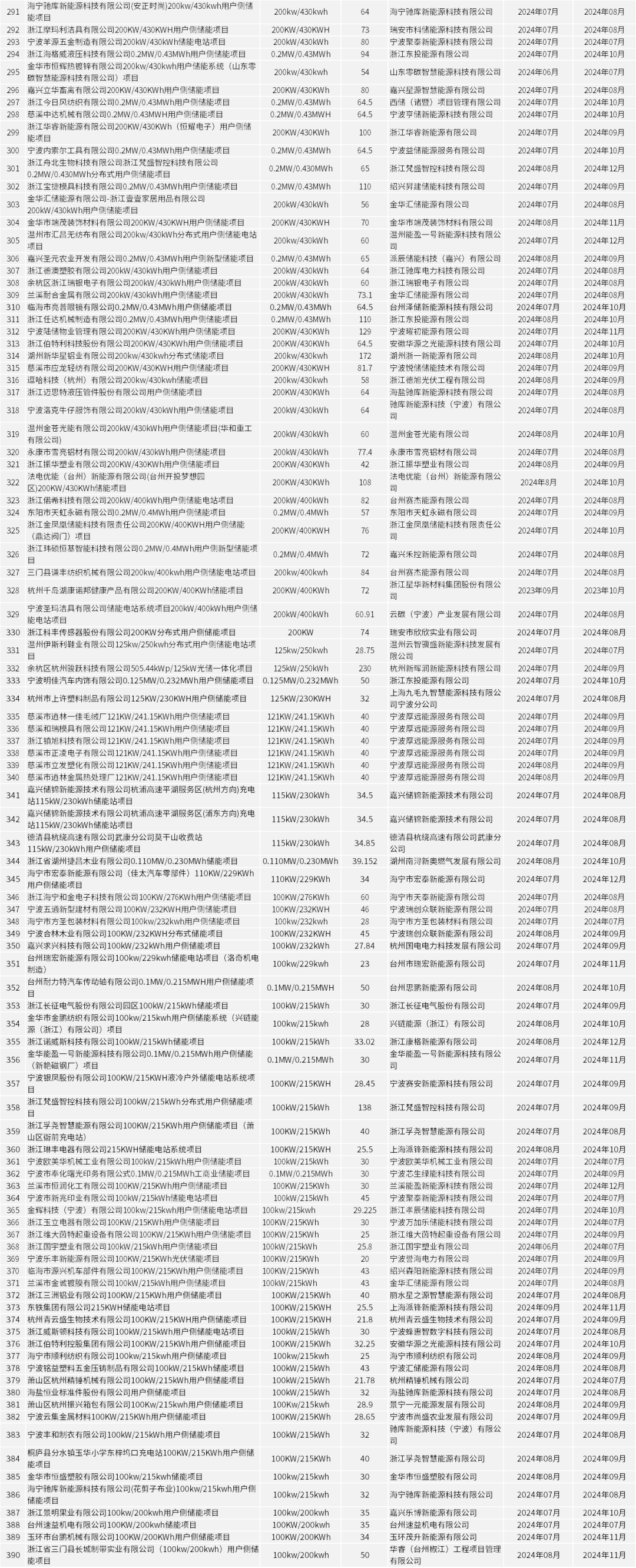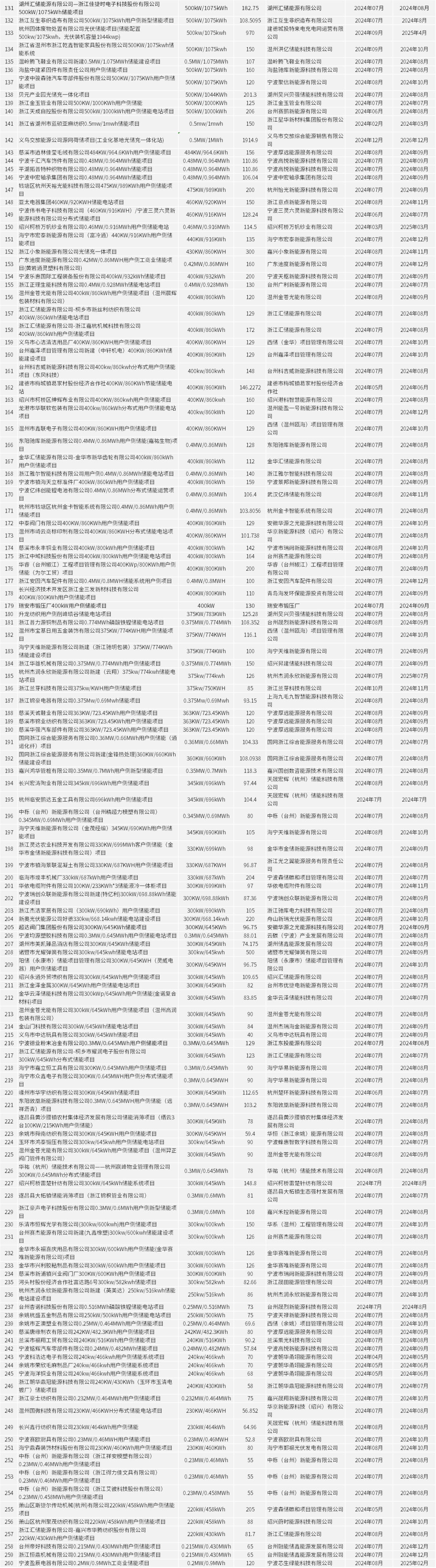 本月度浙江备案储能规模百兆瓦以上的有,长合区储能及光伏发电建设项目,规模为77MW/154MWh;海盐于城75MW/150MWH网侧储能电站项目,规模75MW/150MWH。