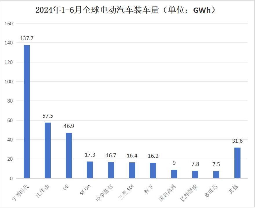 今年上半年,宁德时代动力电池装车量为137.7 GWh,同比增长29.5%,稳居全球榜首。