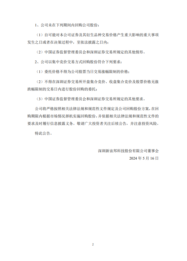 据储能界了解到,5月15日晚间,新宙邦发布公告称,2024年5月15日,公司首次通过股份回购专用证券账户以集中竞价交易方式回购公司股份150000股,占截至公司2024年5月14日总股本的0.0199%。