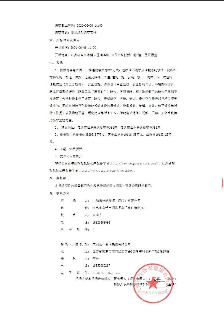 工程建设模式为EPC方式,总投资约38299.87万元,整体综合单价1.923元/Wh,其中泗洪县19116.58万元,折合单价1.919元/Wh,泗阳县19183.29万元,折合单价1.926元/Wh。